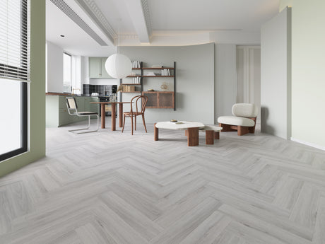 Allora Rigid Herringbone Vinyl Flooring Chateau Grey