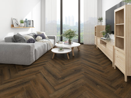 Allora Rigid Herringbone Vinyl Flooring Rustic Oak