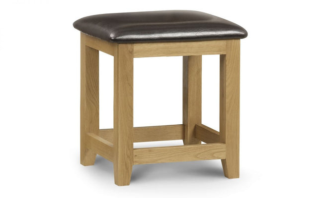 Marlborough is a bedroom range with a classic and timeless design,  beautifully constructed using the finest White Oak and Oak Veneers and which complements both traditional and contemporary decor beautifully.The Marlborough Oak Dressing Stool has a Comfortable Cushioned Seatpad, Upholstered in Dark Brown Faux Leather and accompanies the Marlborough single and twin pedestal dressing tables (sold separately).