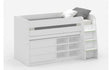 The Vespa Midsleeper is the perfect space saver for kids and teenagers bedrooms. Finished in all white, the midsleeper features cupboards, multiple shelves and a pull out desk. The robust ladder contains beautiful handles, with glow in the dark strips added for safety.