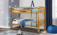 A solid pine bunk bed in an antique lacquered finish. The Chunky bunk is very resilient for the most active of children. This frame features a fixed position ladder and a solid slatted base for extra comfort and long lasting durability.