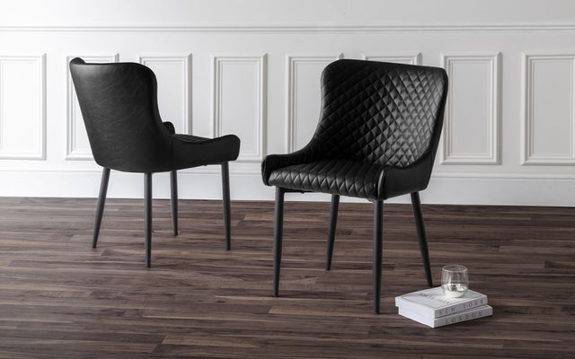 Combining a classic style with a modern twist, the Luxe dining chair is beautifully upholstered in a black faux leather with luxurious quilted detailing. Featuring contemporary black painted legs, this dining chair adds a touch of elegance to any dining area.