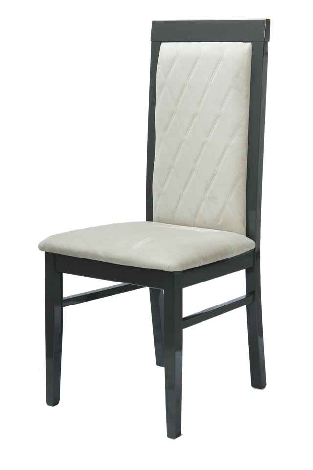 Armony Dining Chair made form rich high gloss grey finish and beautiful fabric upholstery seat and back that is excellent comfort and support for sitting upon. The chair has an armless design and high back making it easy for you to sit upon and well support legs for excellent strength and support.