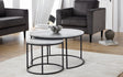 The Bellini Round Nesting Coffee Table ensures long lasting durability, crafted from black coated metal and MDF in an white marble foil finish. This set of two coffee tables boast a contemporary, stylish design with an industrial feel. Ensuring a space saving solution, the coffee tables slot together as and when they are in use.