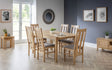 Extending from 140cm to 180cm, the Cotswold Dining Table spaciously seats up to 6 people. Crafted from solid oak and oak veneers, the Cotswold highlights the natural beauty of the wood through the grain creating a traditional style with a clean and simple design. Pair with the Cotswold Dining Chairs for an eye-catching dining set. Part of the Julian Bowen Cotswold Dining and Occasional Collection.
