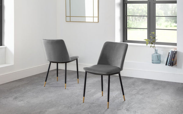 The Delaunay Dining Chair offers a simple, modern design finished in Velvet with black legs and brushed brass tips for an elegant finish. Perfect for adding a touch of glamour to your living room or kitchen space, this elegant chair will perfectly match a range of dining tables.