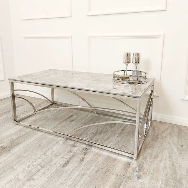Stella Chrome Coffee Table with Stomach Ash Grey Sintered Top