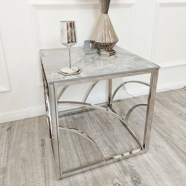 Stella Chrome Lamp Table with Stomach Ash Grey Sintered Top