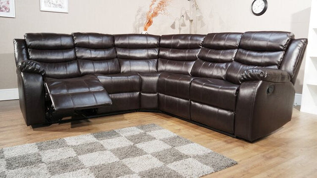 The Vista Sofa has a modern shape and its plush three pillow backs, padded arms and headrests, combined with neat trimming, that gives that perfect look, ideal for any living room. The corner sofa has a recliner on both ends.