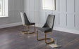 The Vittoria Cantilever chair brings sophistication and class to your home. With a golden U-shaped base and elegant velvet upholstery – this chair provides a classic touch to any dining area. The solid metal base adds great stability whilst the high backrests are supportive and comfortable. Available in grey or blue.