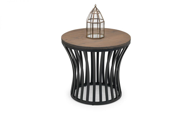 On a sturdy black metal frame, the Washington Lamp Table is an attractive, trendy piece. The table juxtaposes its narrow base with a warm elm finish, enhancing the wood grain effect. Pair with the matching Julian Bowen Washington coffee table, perfect for a wide range of décor.