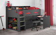 The Jupiter Midsleeper is an ideal space saver, featuring a chest of drawers, various shelves and a pull-out desk. Available in three-colour options, White, Grey Oak or Anthracite, the Jupiter is the perfect match for any kids bedroom, creating a fresh modern design. The robust ladder features beautiful cut out handles, with glow in the dark strips on the steps for added safety.