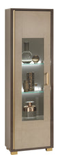 Cesar 1 Door Display Cabinet creates a sumptuous and appealing look which will brighten up your living room. Made from rich sand beige finish door fronts with contrasting brown effect top and side panels and golden frame and handle provides a commanding presence in any room. Its single glass door inside shelves and LED light gives it a warm tone whilst adding a relaxed feel to your dining room or anywhere about your home.